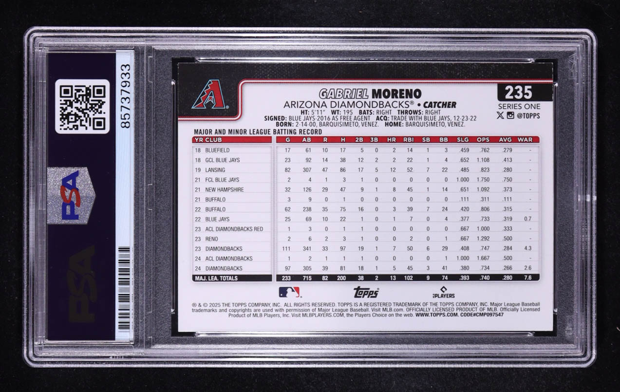 Gabriel Moreno Signed 2025 Topps Series One #235 (PSA)