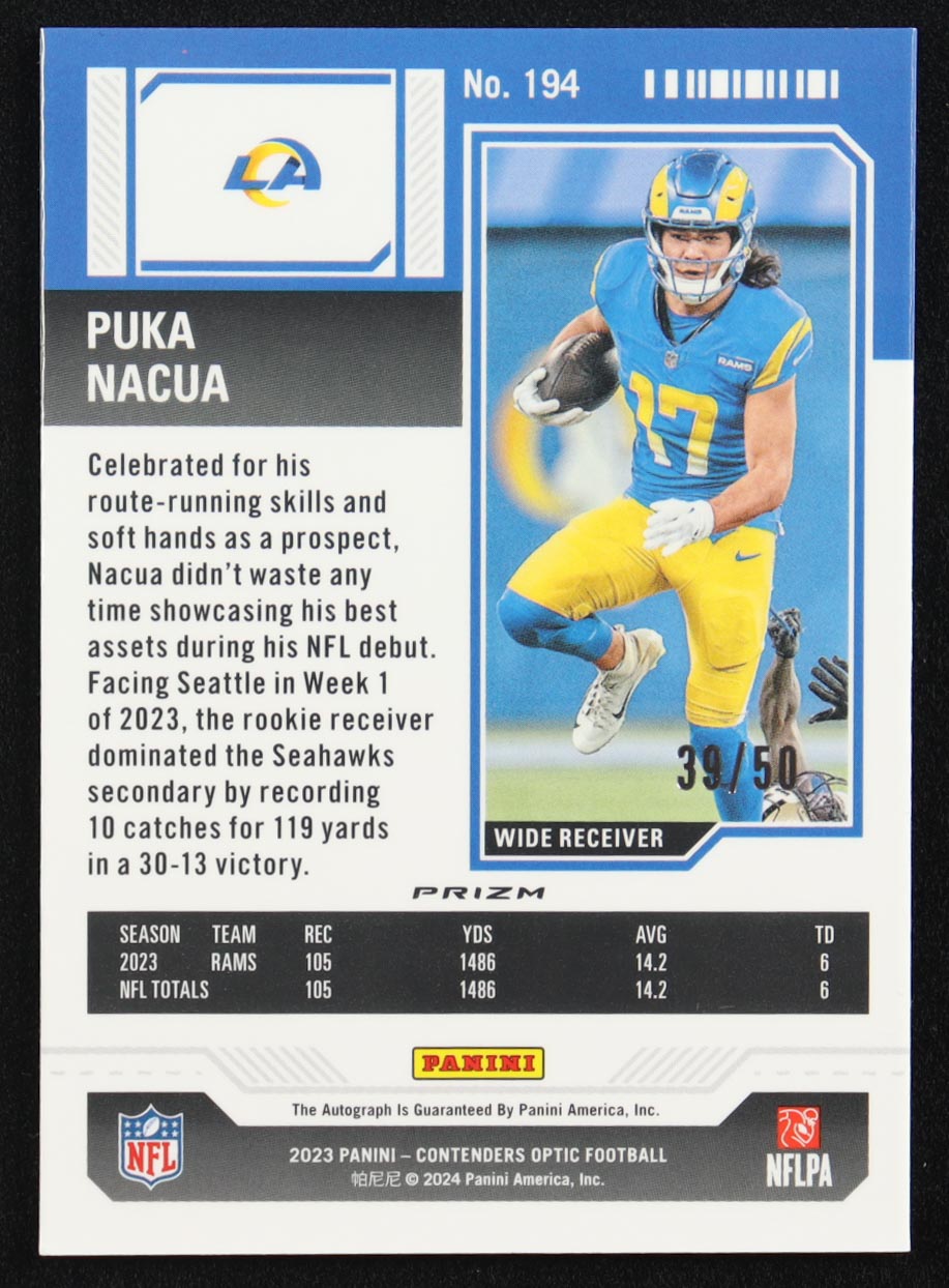 Puka Nacua 2023 Panini Contenders Optic Orange AU #194 #39/50 RC