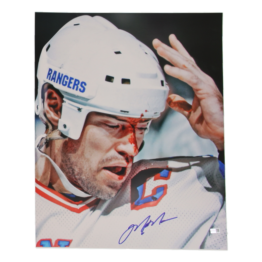 Photo measures 16" x 20" in size and has been hand-signed by Mark Messier (New York Rangers, HOF).