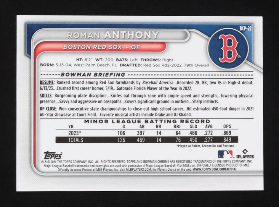Roman Anthony 2024 Bowman Chrome Prospects Aqua Lunar Refractors #BCP22 #068/125 RC
