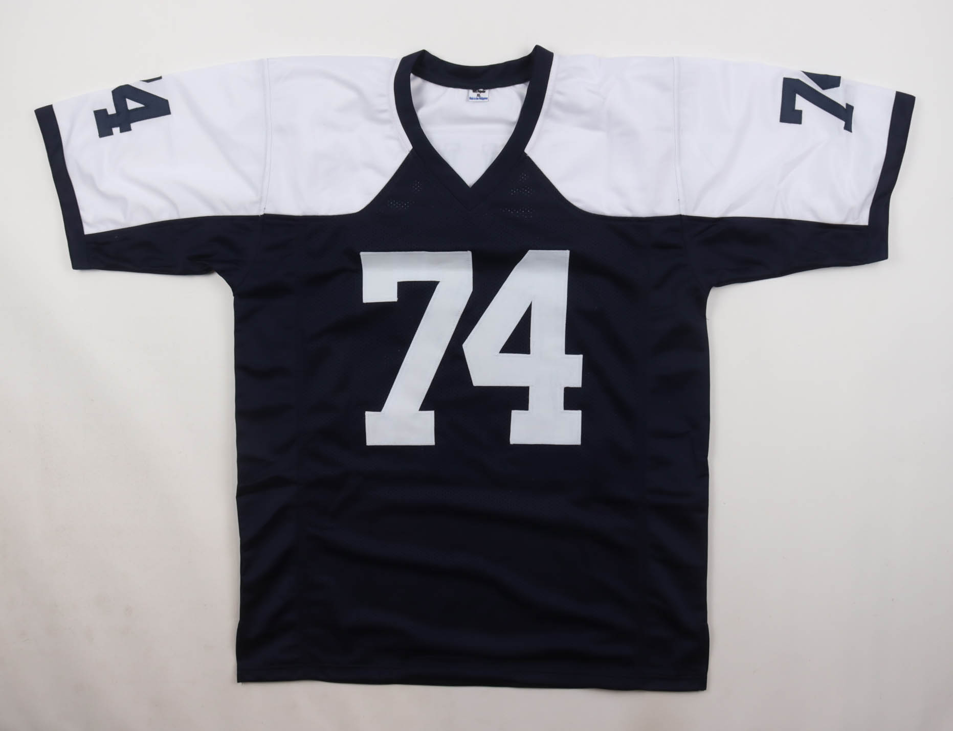 Custom jersey with everything sewn on, size XL. Hand-signed by Bob Lilly (Dallas Cowboys, HOF).