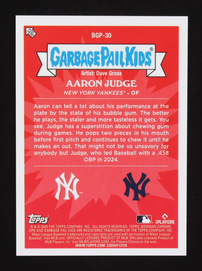 Aaron Judge 2025 Bowman Chrome Bowman GPK #BGP30 Gummy Aaron
