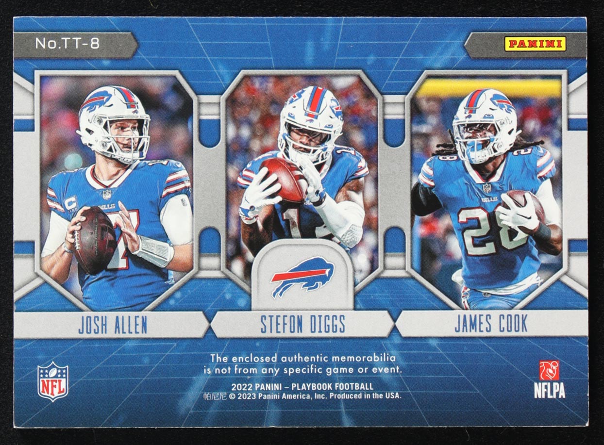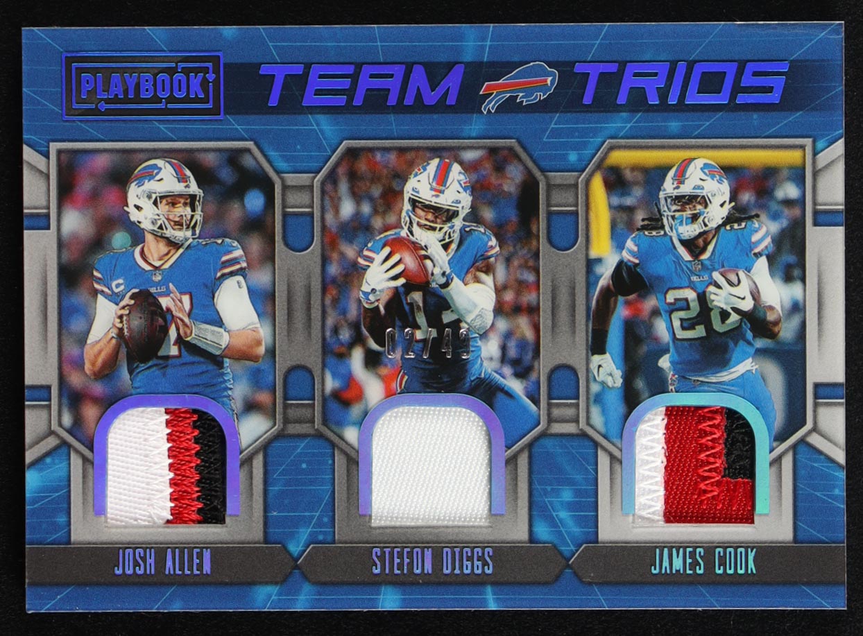 Josh Allen / James Cook RC / Stefon Diggs 2022 Panini Playbook Team Trios Materials Platinum #8 #02/49