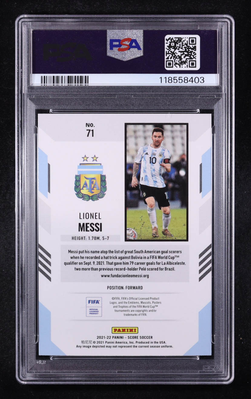 Lionel Messi 2021-22 Panini Score FIFA Red Lava #71 (PSA 9)