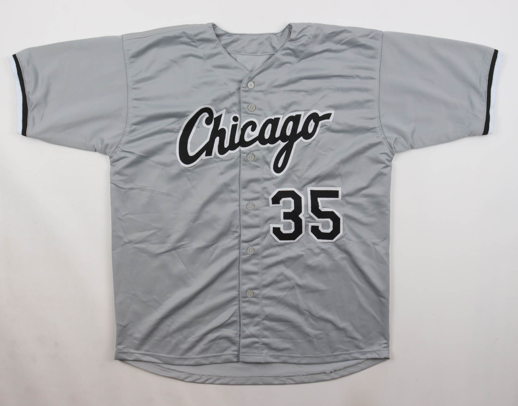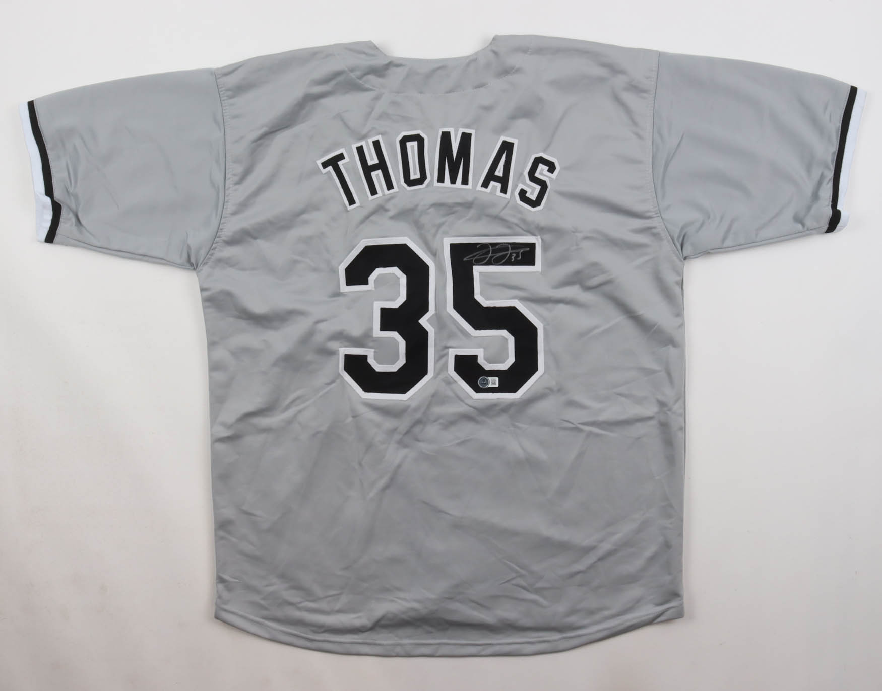 Custom jersey with everything sewn on, size XL. Hand-signed by Frank Thomas (Chicago White Sox, HOF).