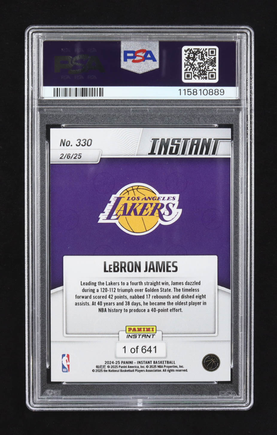 LeBron James 2024-25 Panini Instant #330 (PSA 9)