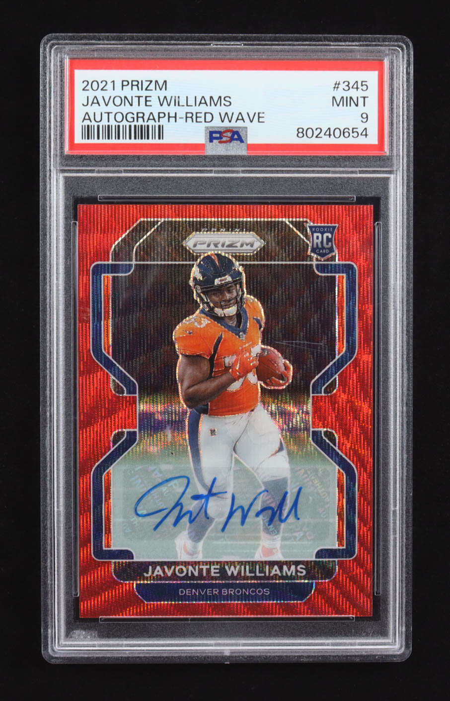 Javonte Williams 2021 Panini Prizm Rookie Autographs Prizms Red Wave #345 #146/149 RC (PSA 9)