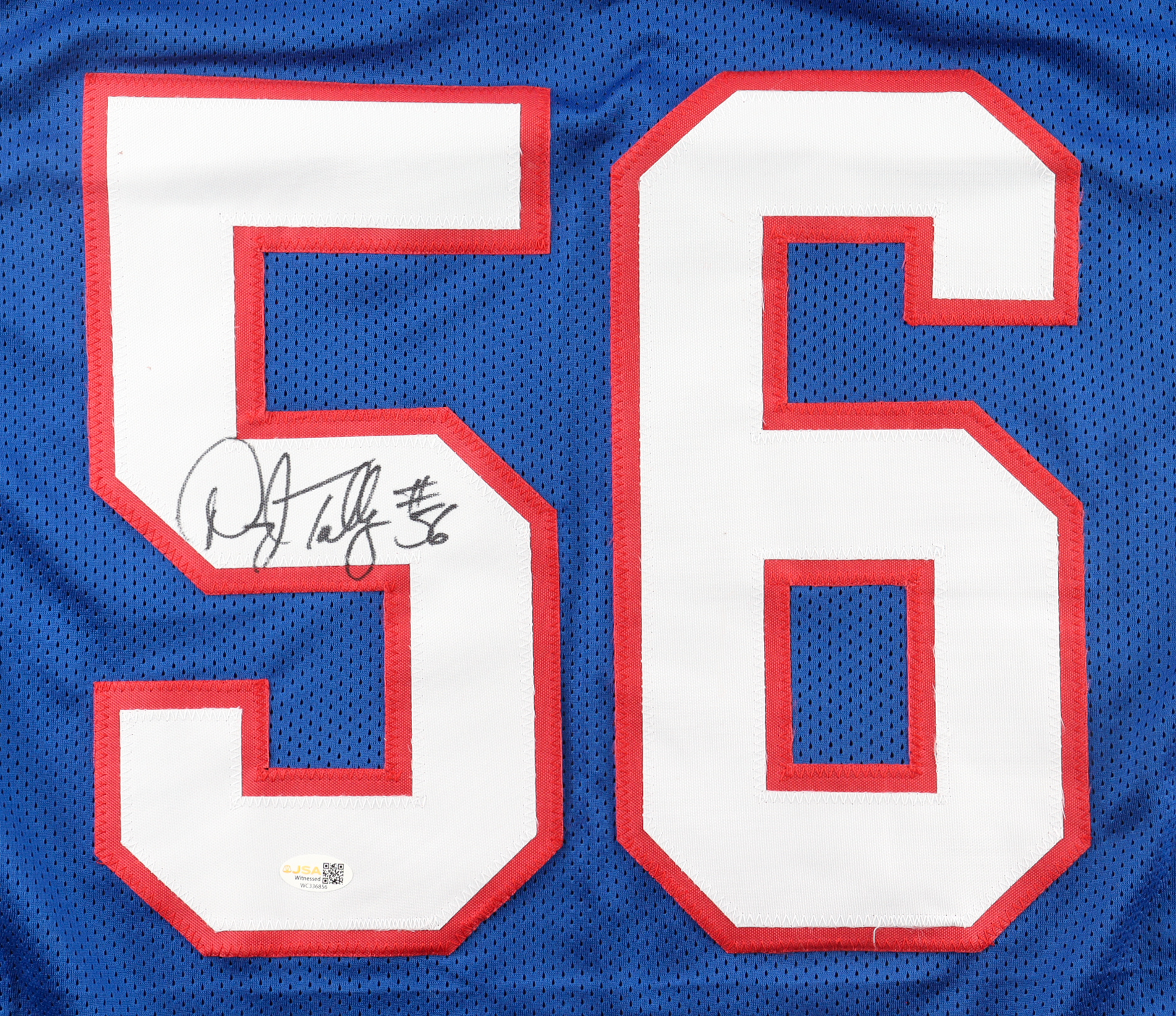 Custom jersey with everything sewn on, size XL. Hand-signed by Darryl Talley.