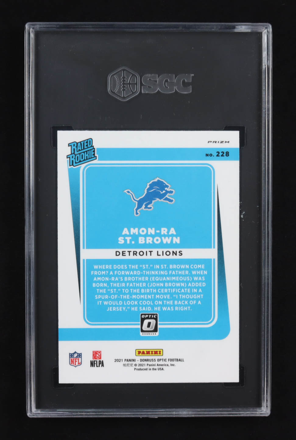 Amon-Ra St. Brown 2021 Donruss Optic Blue Scope #228 RR RC (SGC 10)