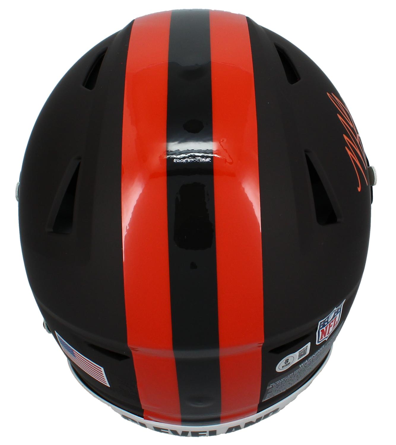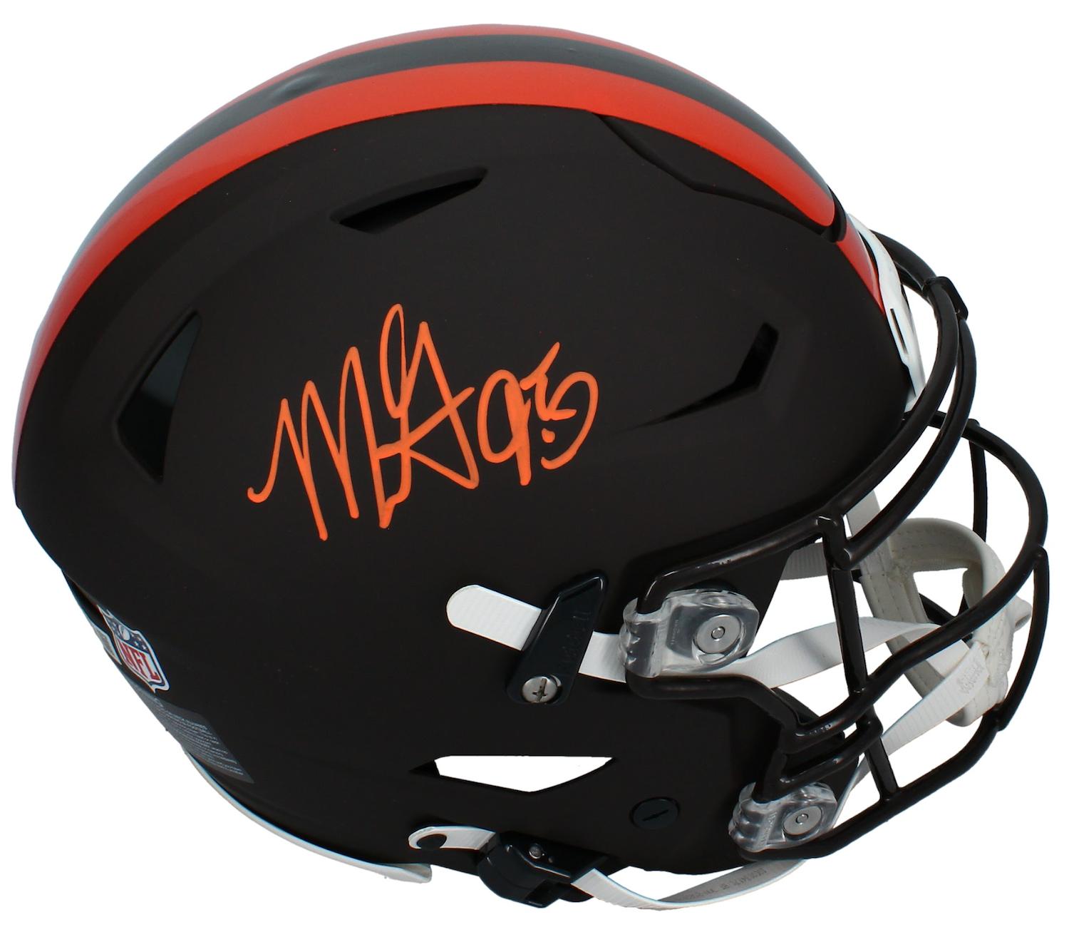 Riddell Cleveland Browns full-size authentic on-field alternate speedflex helmet. Hand-signed by Myles Garrett.