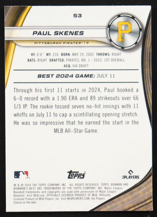 Paul Skenes 2024 Bowman's Best #53 RC