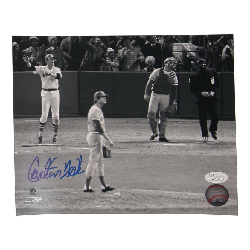 Photo measures 8" x 10" in size. Hand-signed by Carlton Fisk (Boston Red Sox, HOF).