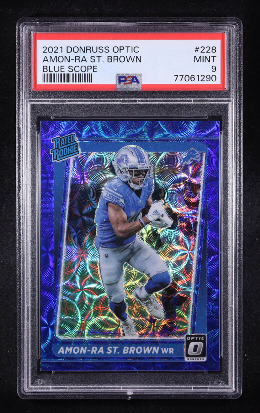 Amon-Ra St. Brown 2021 Panini Donruss Optic Blue Scope RR #228 RC (PSA 9)