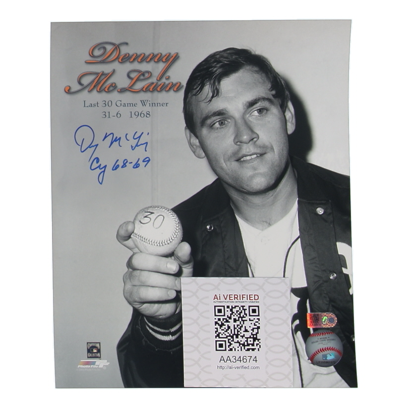 Photo measures 8" x 10" in size and has been hand-signed and inscribed by Denny McLain (Detroit Tigers).