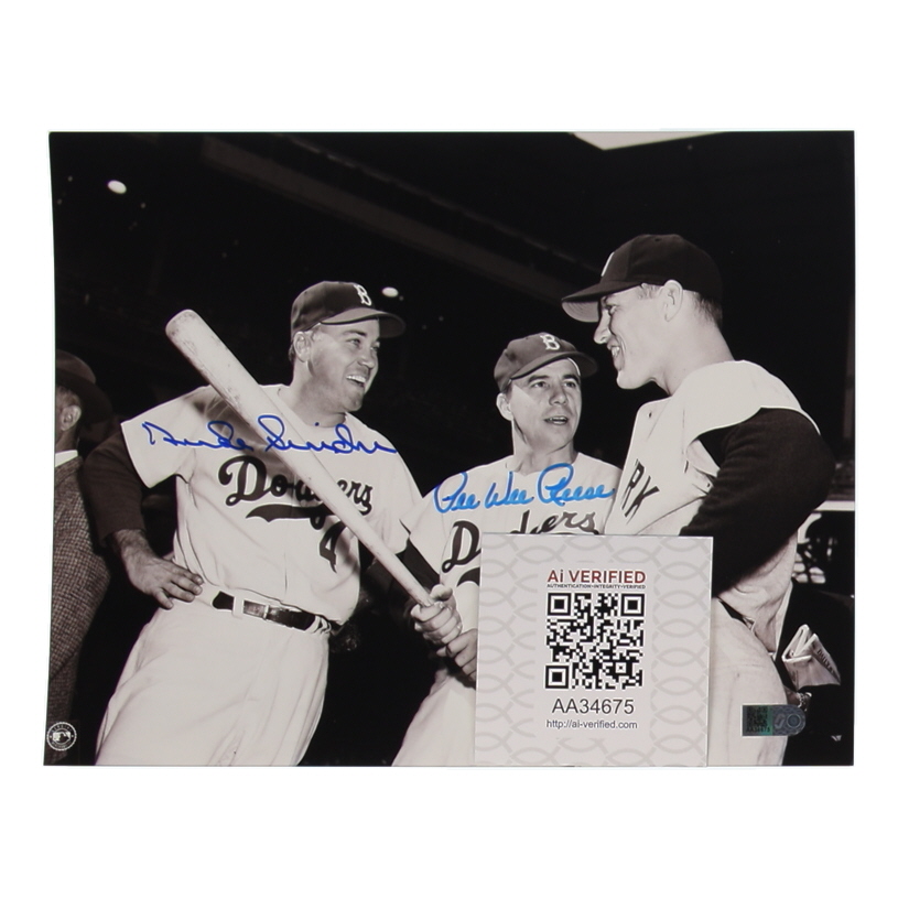 Photo measures 8" x 10" in size and has been hand-signed by Duke Snider (D. 2011, Brooklyn Dodgers, HOF) & Pee Wee Reese (D.1999, HOF).
