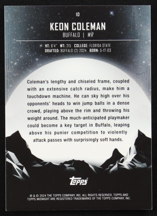 Keon Coleman 2024 Topps Midnight Winter Solstice #10 #08/35 RC