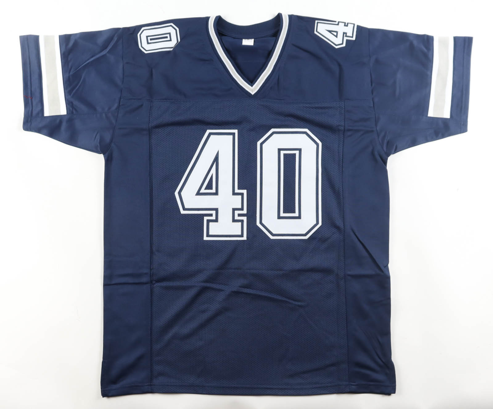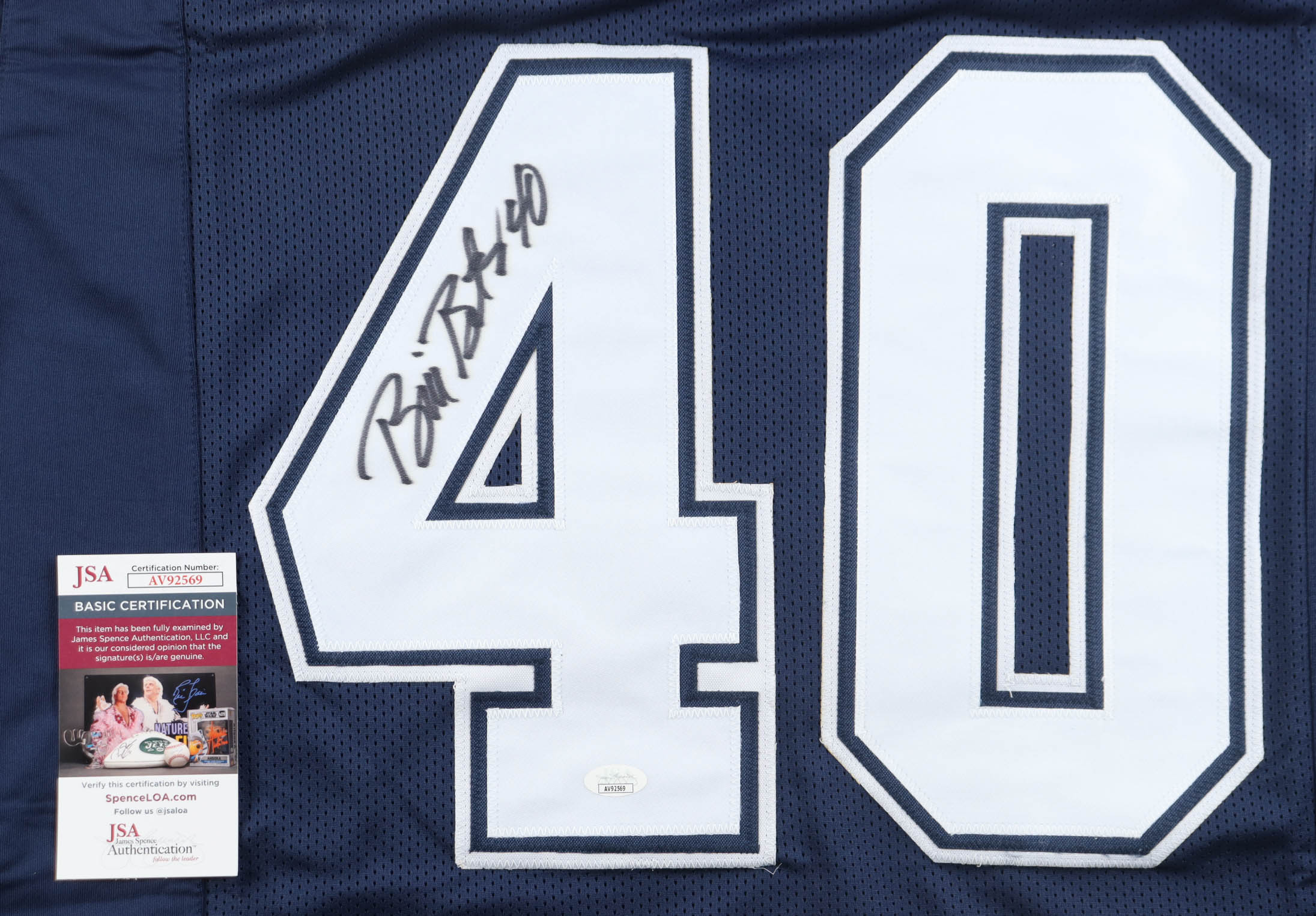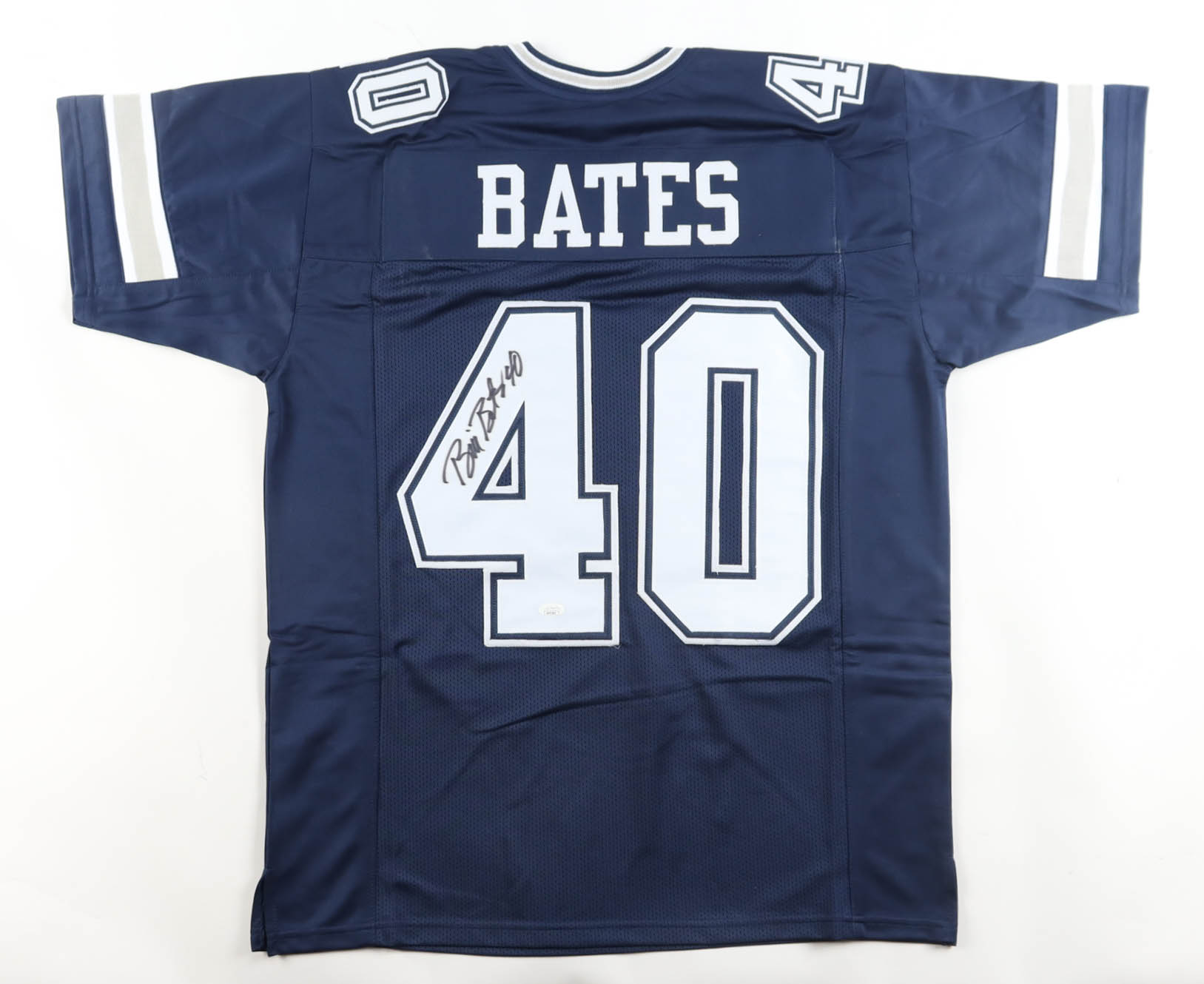 Custom jersey with everything sewn on, size XL. Hand-signed by Bill Bates.