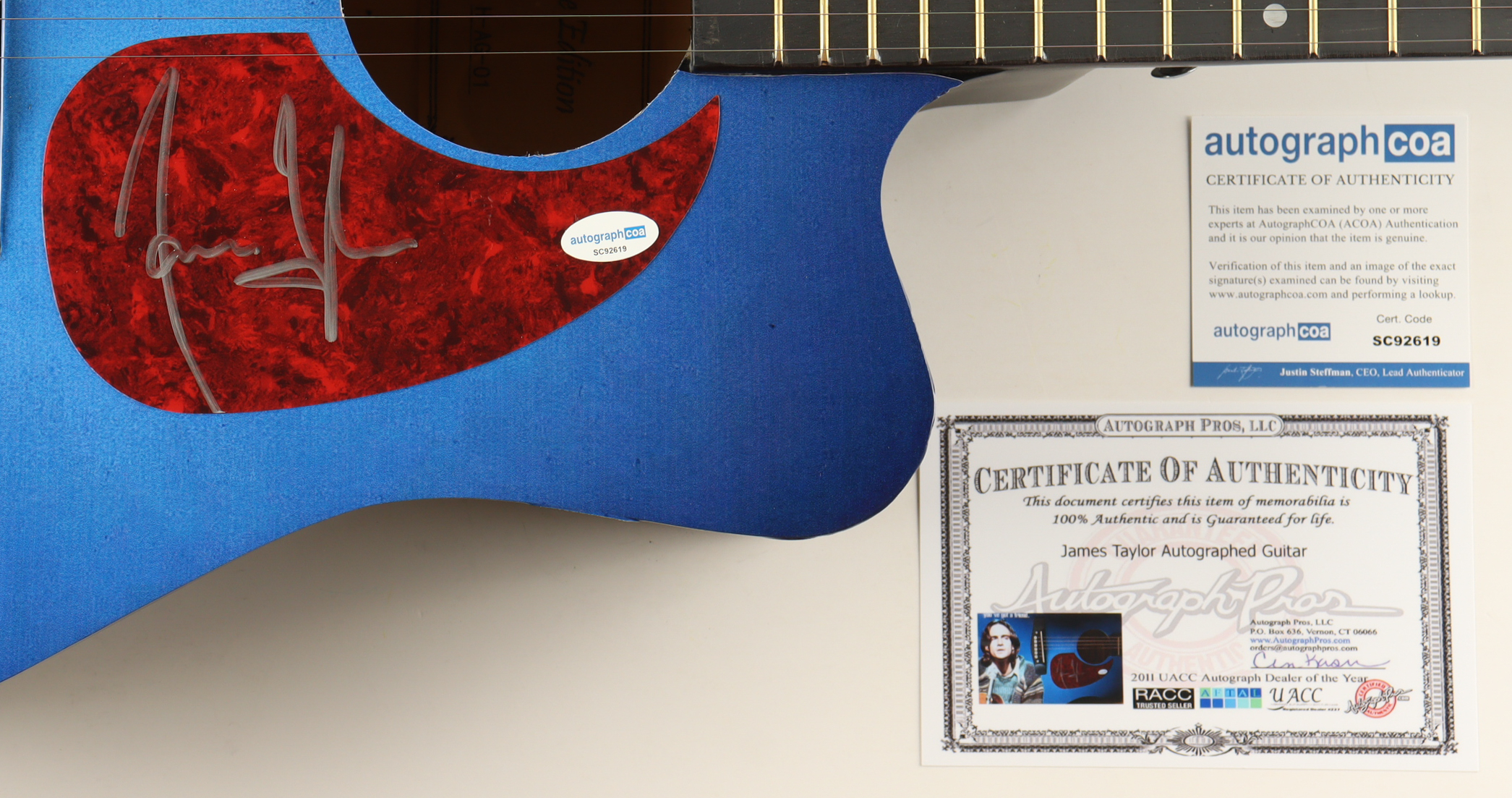 James Taylor Guitar with Signed Custom Insert Pickguard (ACOA & AutographPros)