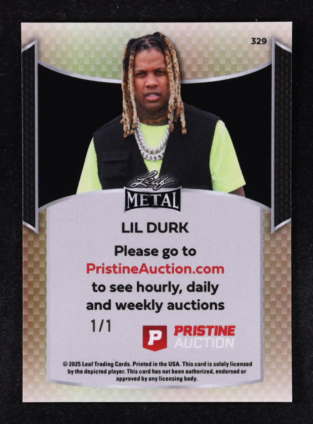 Lil Durk 2025 Leaf Metal Pristine Auction Collection Super Prismatic Gold #329 #1/1