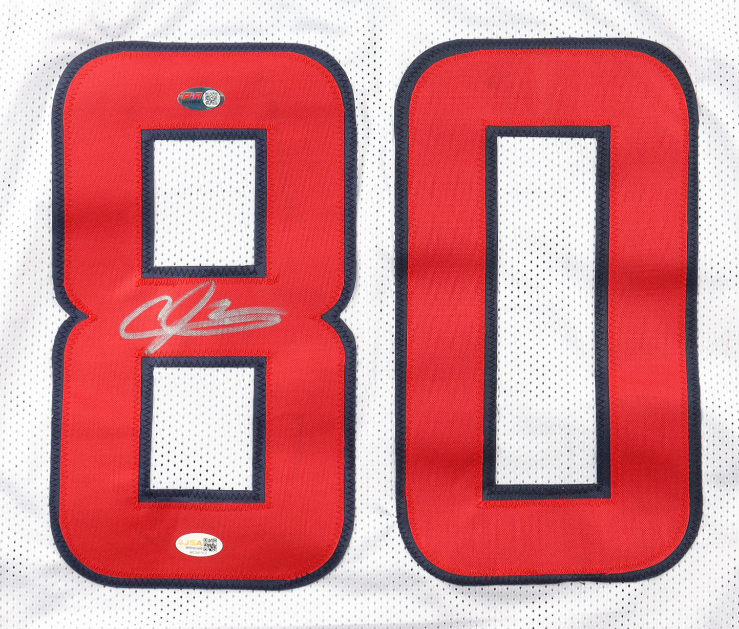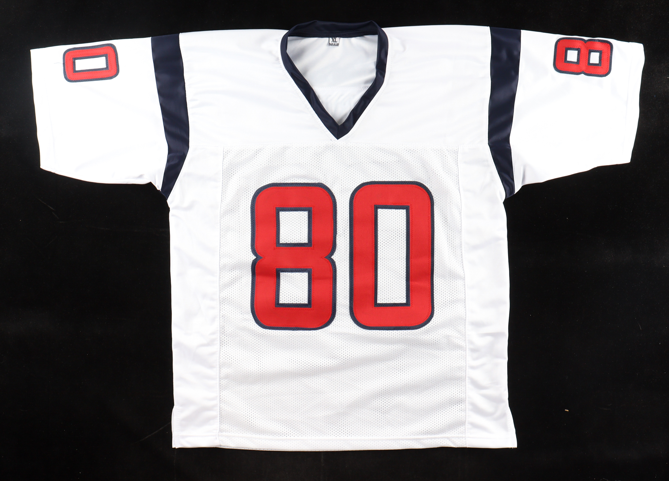 Custom jersey. Everything is sewn on, size XL. Hand-signed by Andre Johnson.