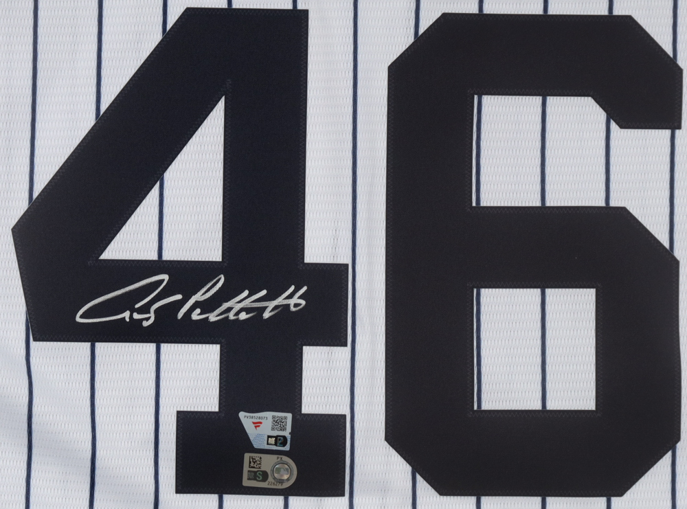 Nike authentic jersey with everything pressed on, size XL. Hand-signed by Andy Pettitte (New York Yankees).