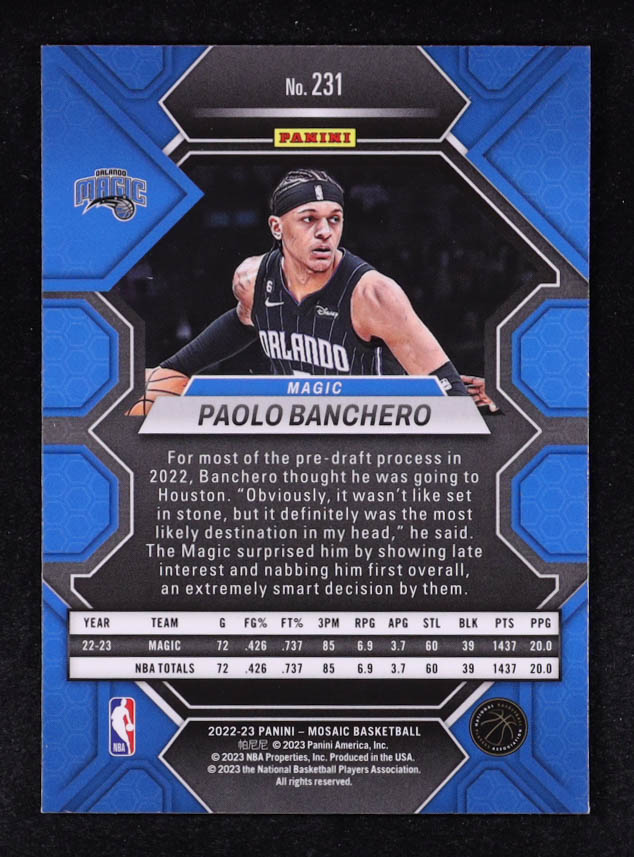 Paolo Banchero 2022-23 Panini Mosaic #231 RC
