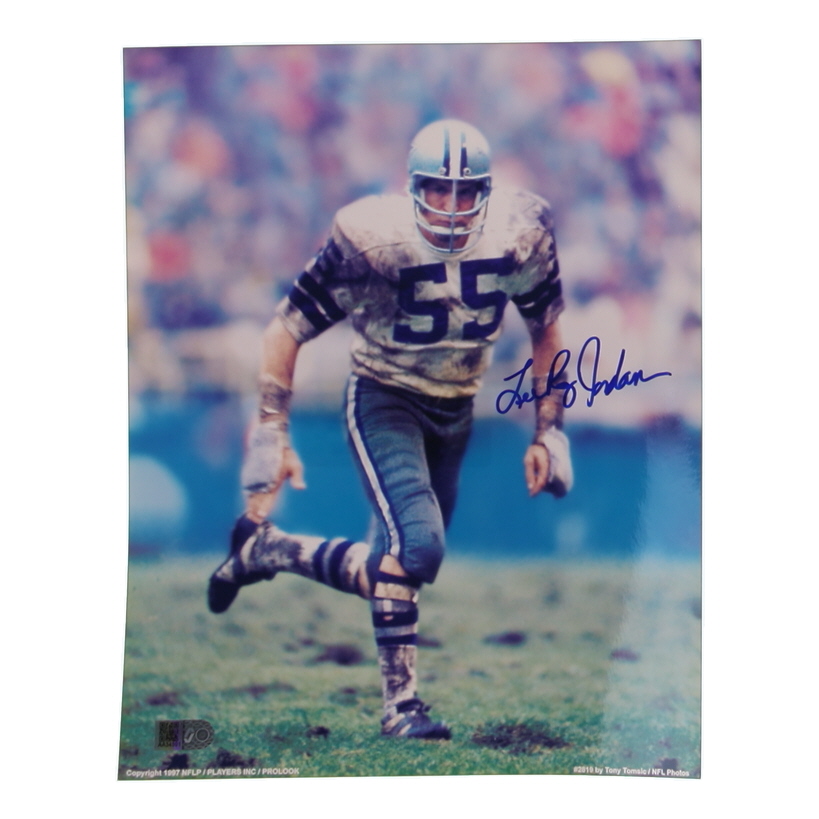 Photo measures 8" x 10" in size and has been hand-signed by Lee Roy Jordan (Dallas Cowboys).