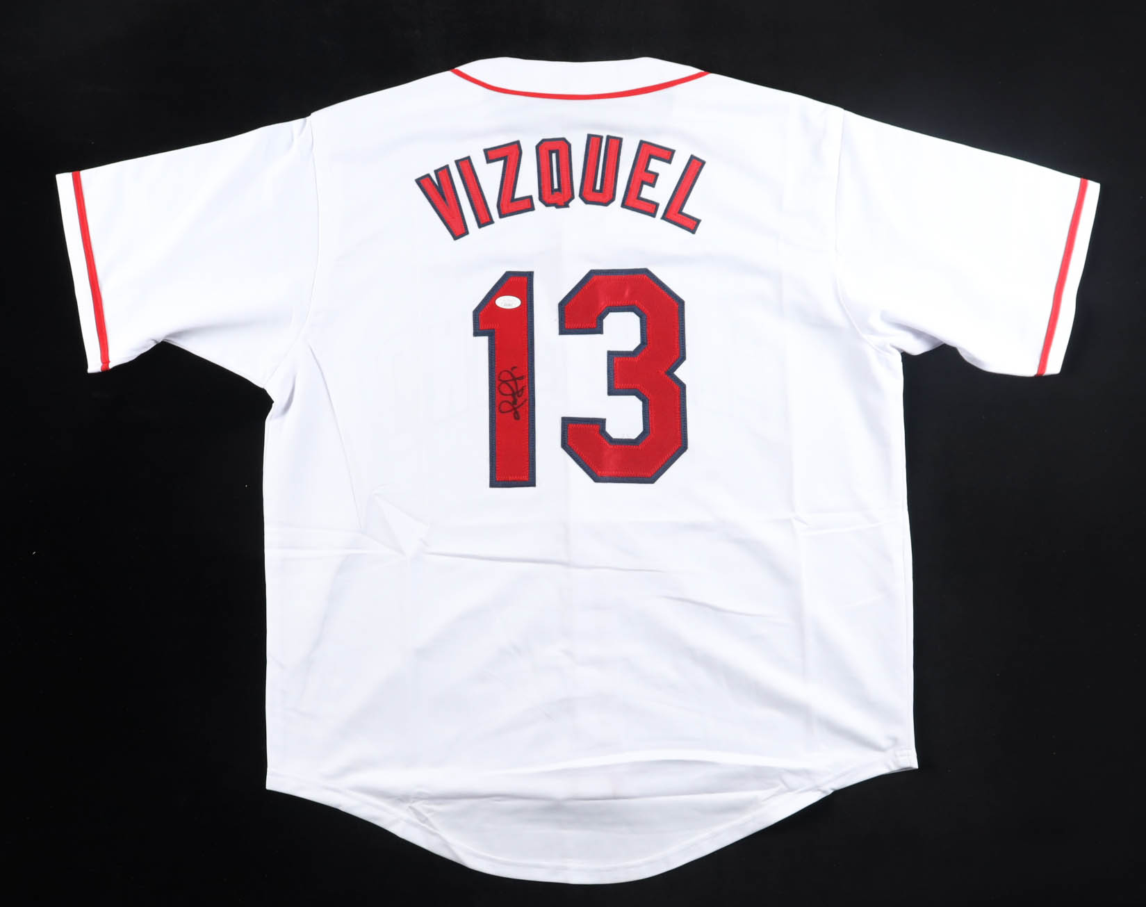 Custom jersey. Everything is sewn on, size XL. Hand-signed by Omar Vizquel.