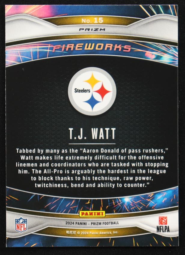 T.J. Watt 2024 Panini Prizm Fireworks Prizms No Huddle #15