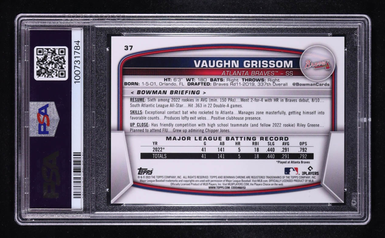 Vaughn Grissom 2023 Bowman Chrome Sapphire Aqua Refractors #37 #53/99 RC (PSA 10)