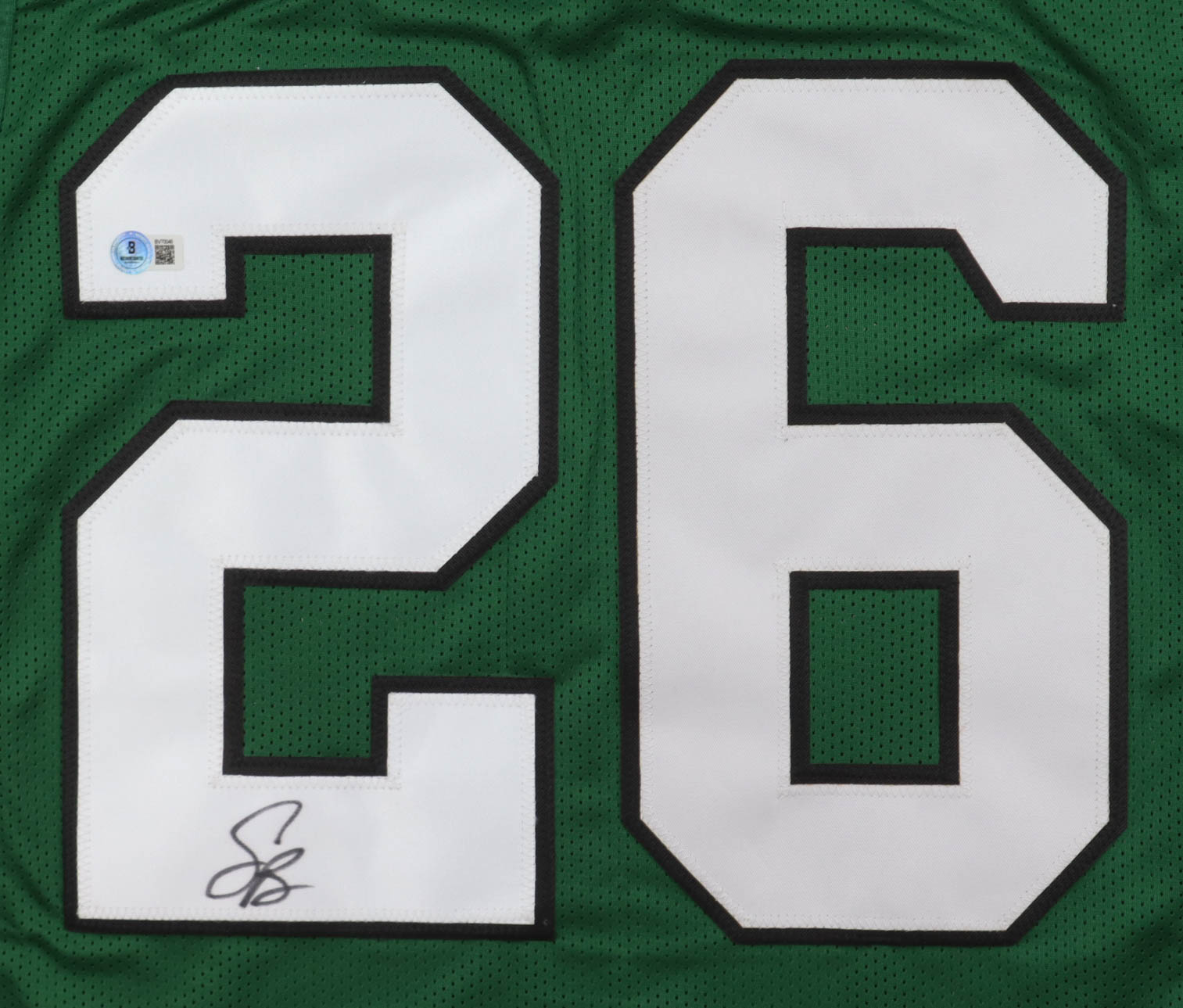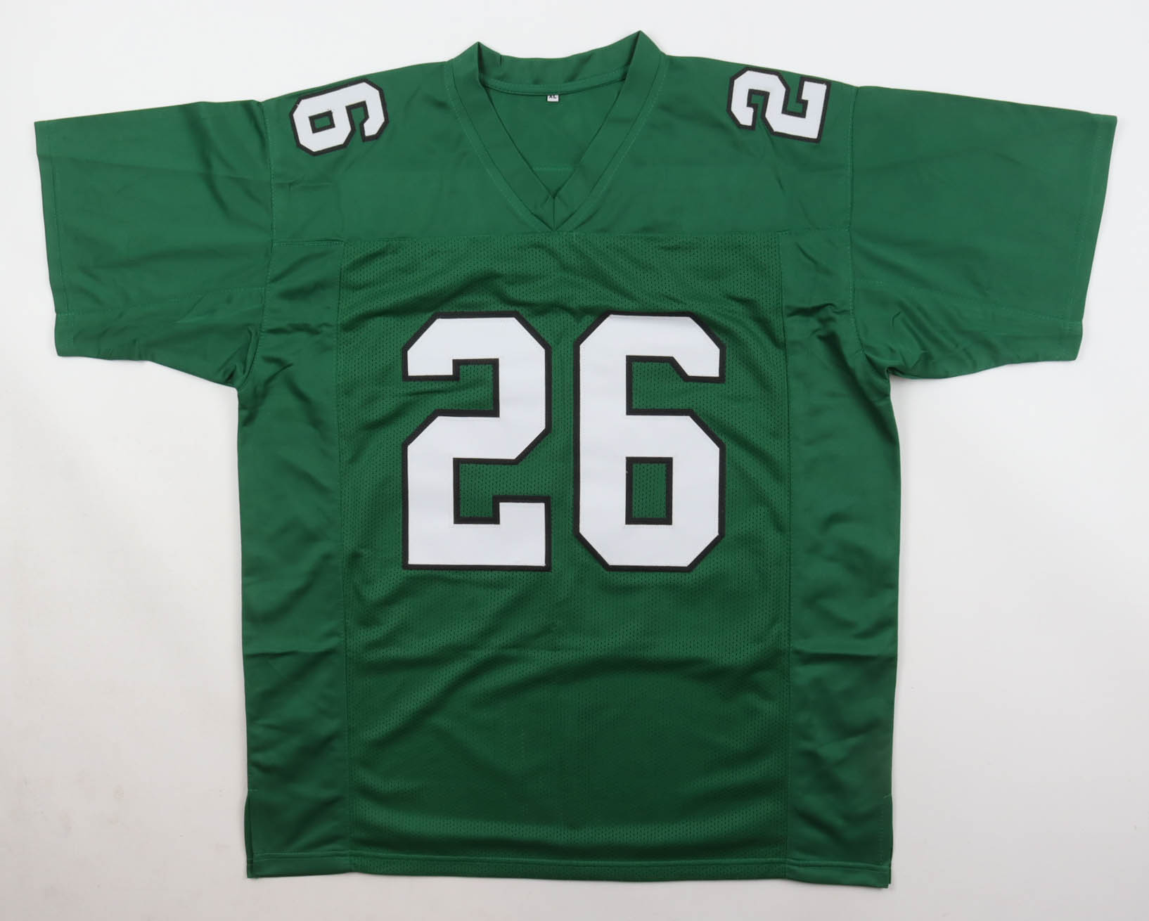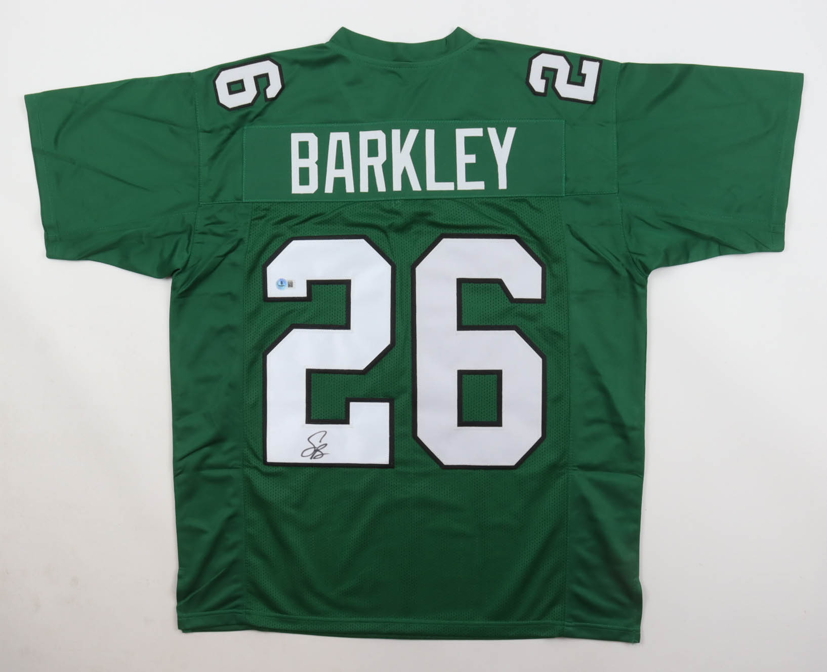 Custom jersey with everything sewn on, size XL. Hand-signed by Saquon Barkley.