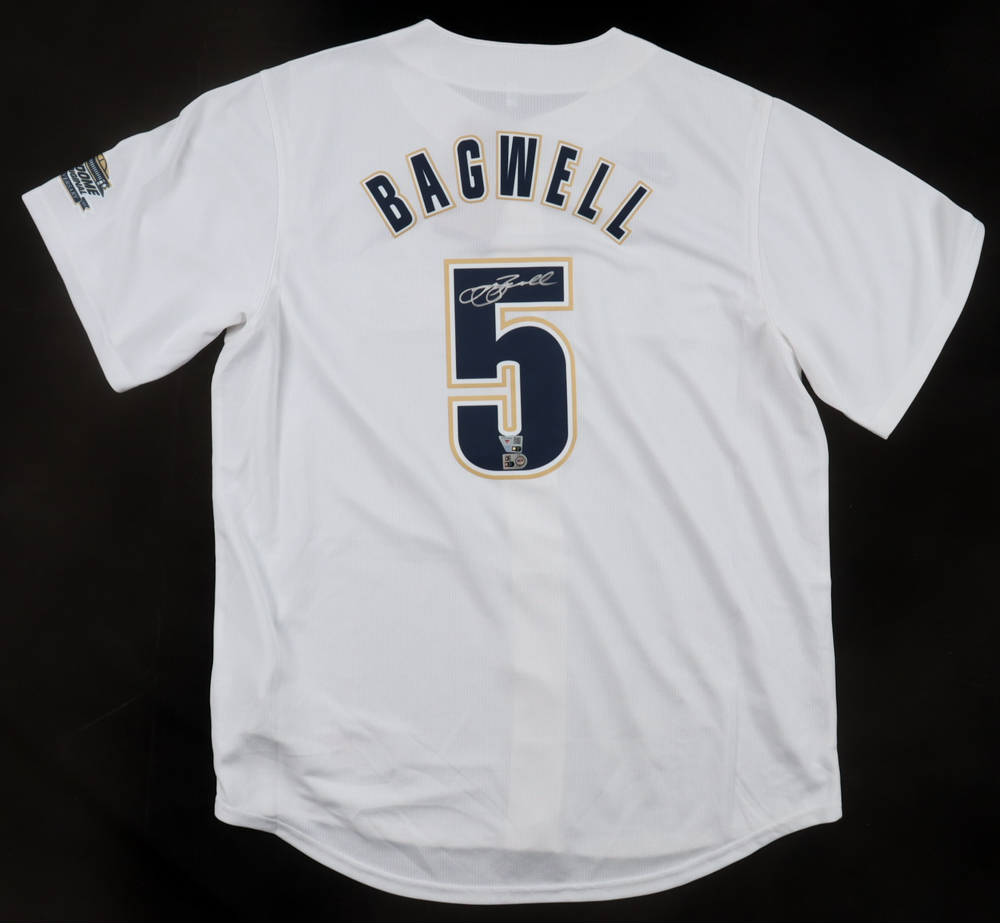 Nike authentic jersey with everything pressed and sewn on, size XL. Hand-signed by Jeff Bagwell (Houston Astros, HOF).