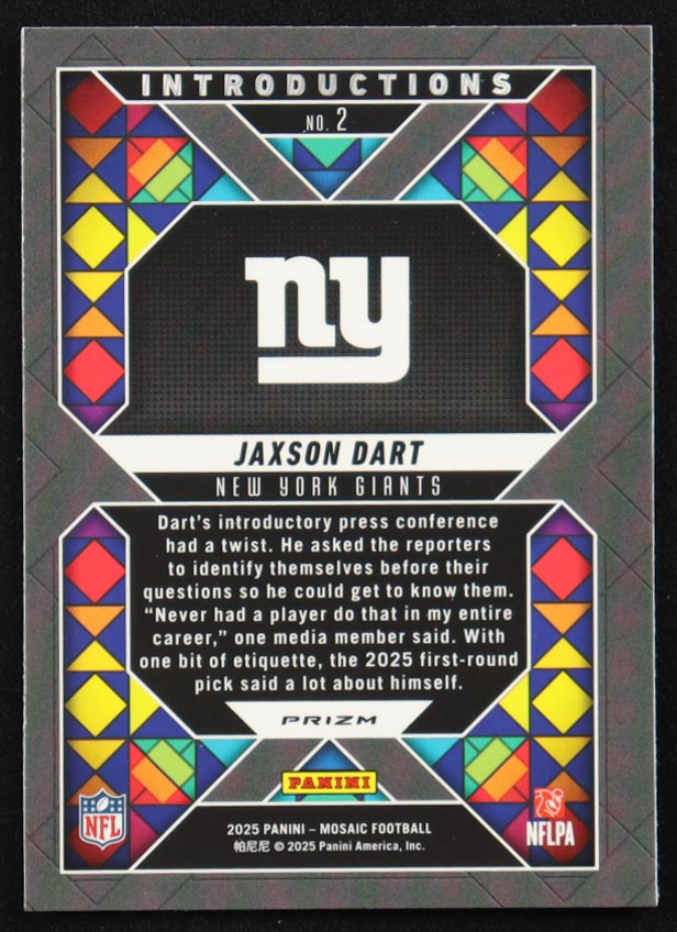 Jaxson Dart 2025 Panini Mosaic Introductions Silver #2 RC
