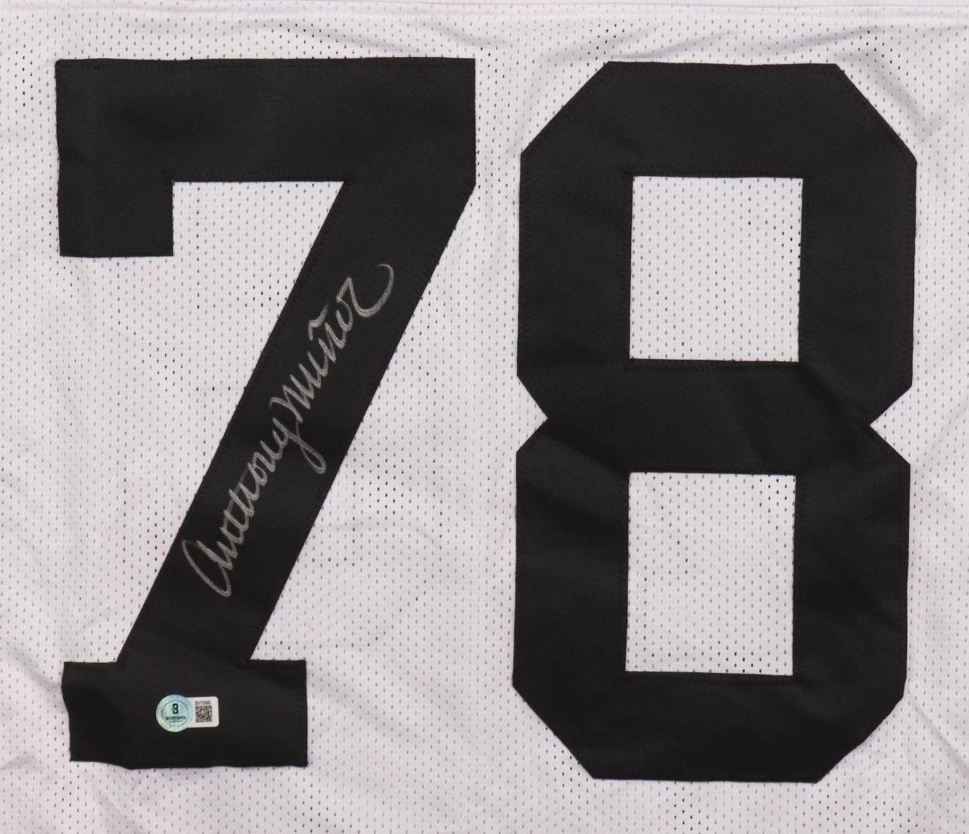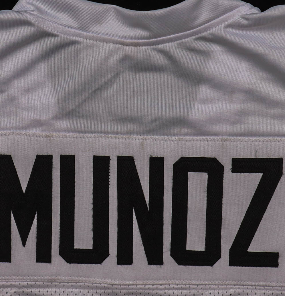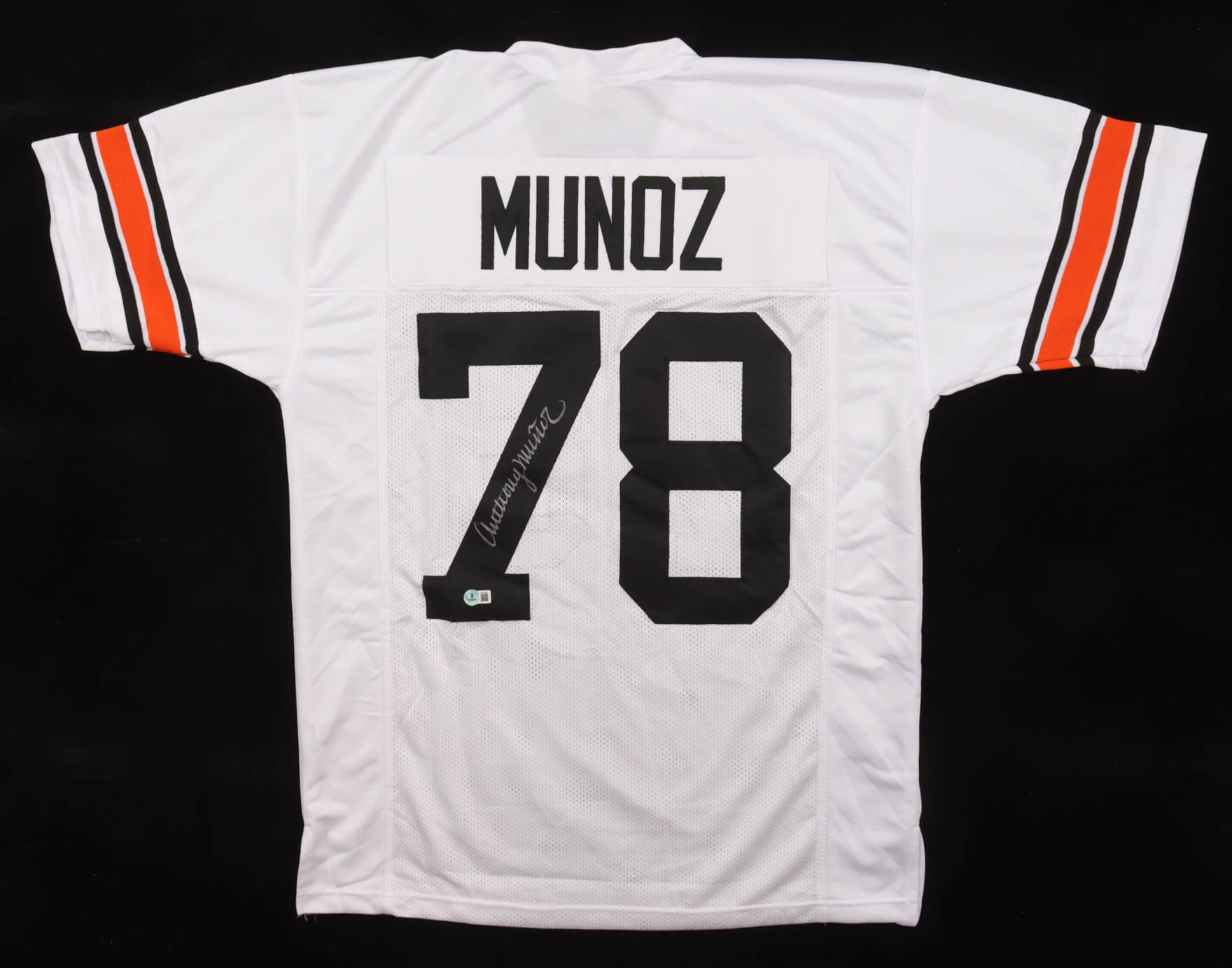 Custom jersey with everything sewn on, size XL. Hand-signed by Anthony Munoz (HOF). Please note, there is staining on and above the name plate. See photos regarding the condition of the item.