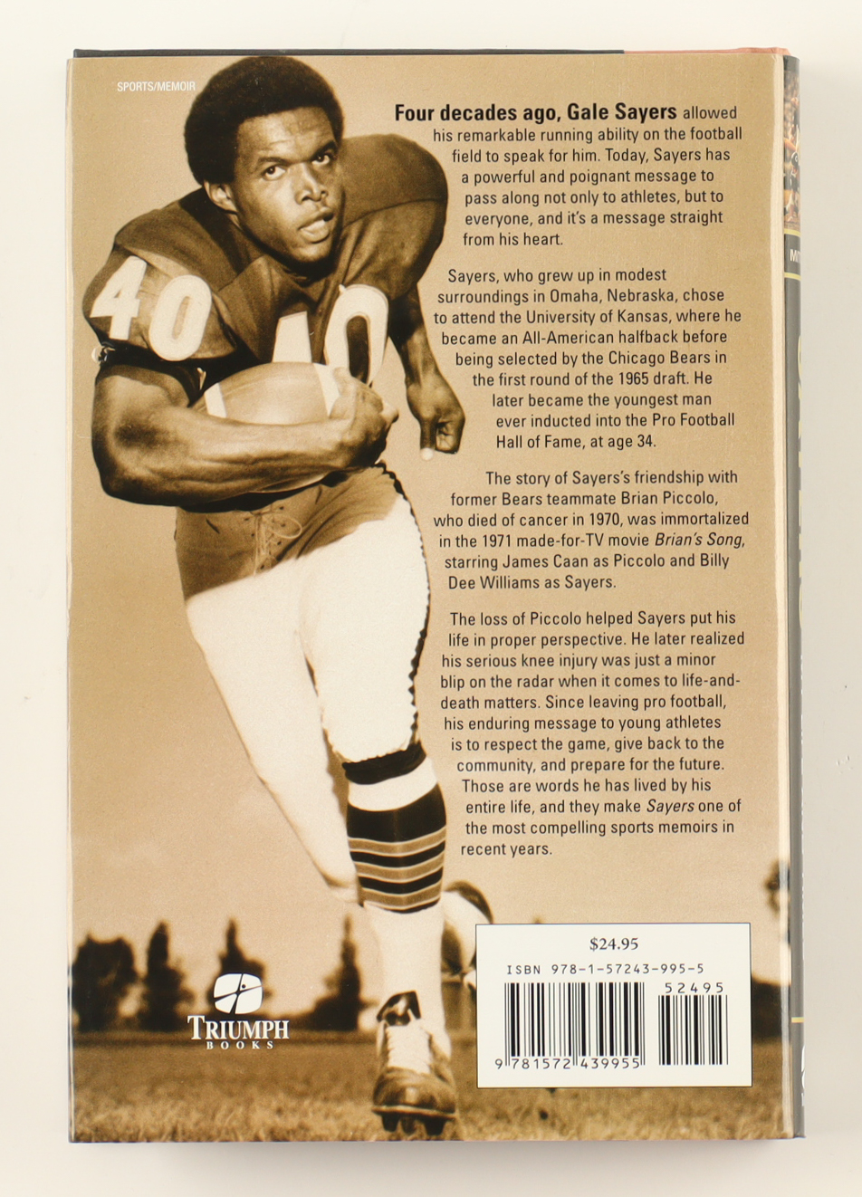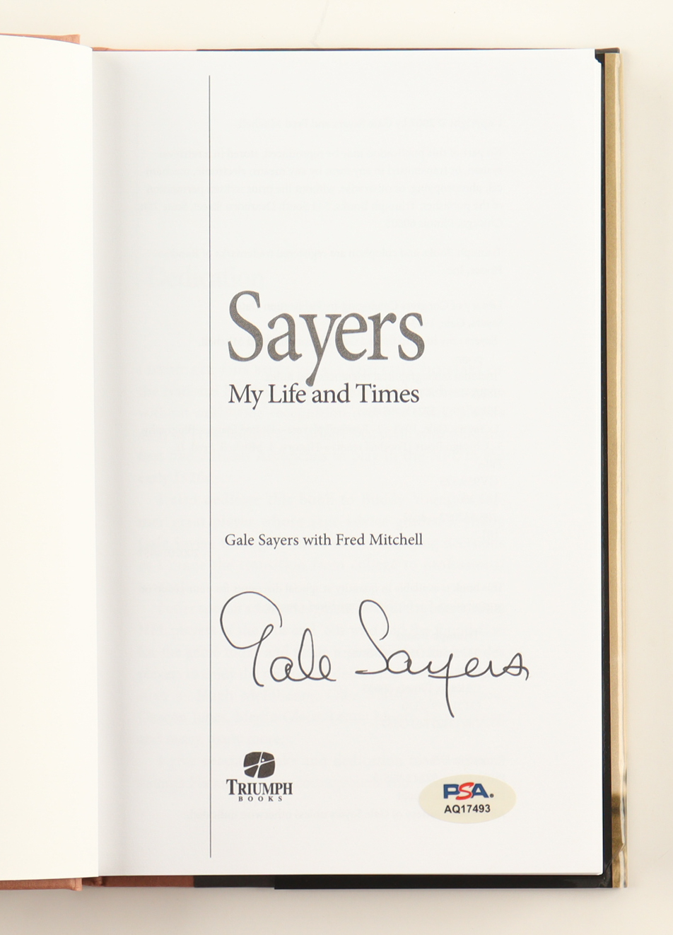 Hardcover book has been hand-signed on the inside title page by Gale Sayers (D. 2020, Chicago Bears, HOF).