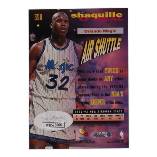 Shaquille O'Neal Signed 1993-94 Stadium Club Frequent Flyers #358 (JSA)