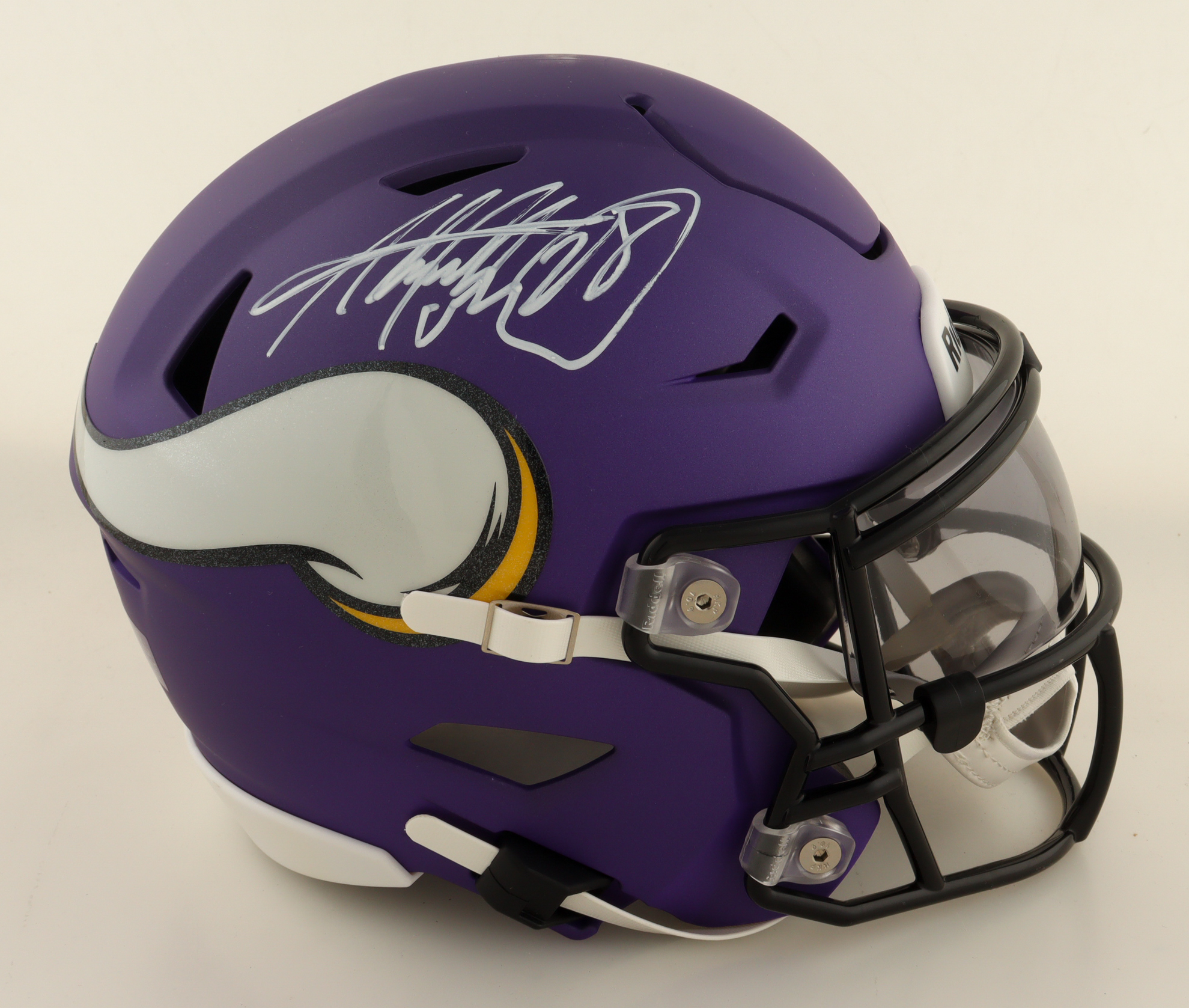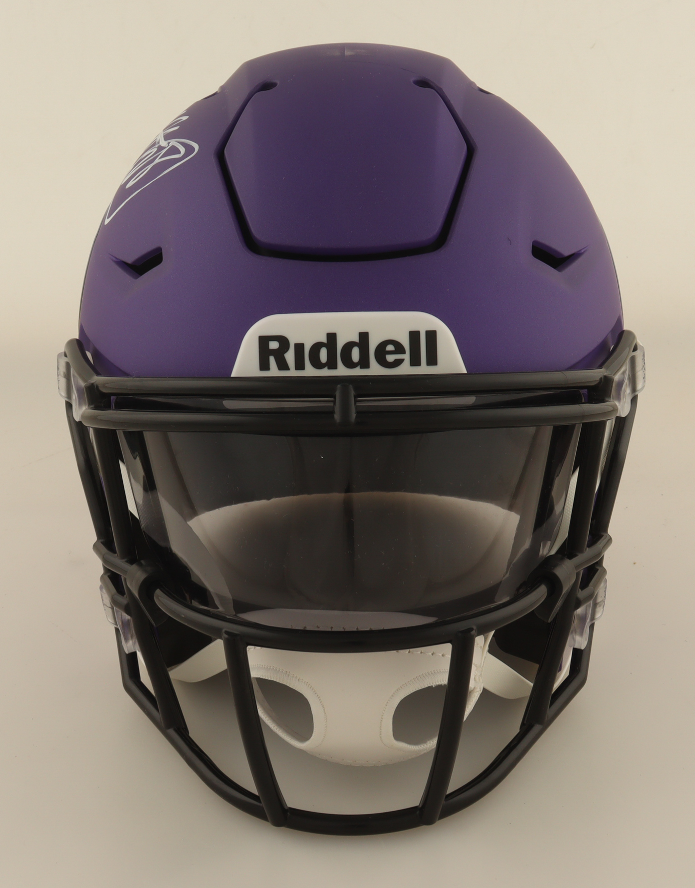 Riddell Minnesota Vikings Mid-Size Speed helmet with visor. Hand-signed by Adrian Peterson.