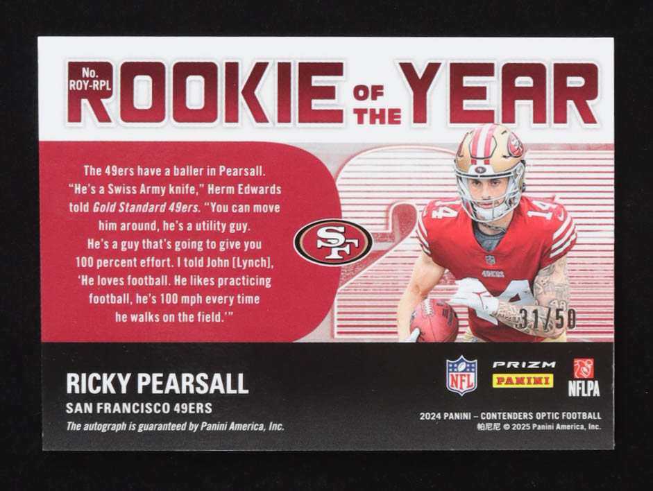Ricky Pearsall 2024 Panini Contenders Optic Rookie of the Year Contenders Signature Orange #8 #31/50 RC