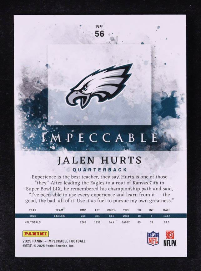 Jalen Hurts 2025 Panini Impeccable Emerald #56 #1/5