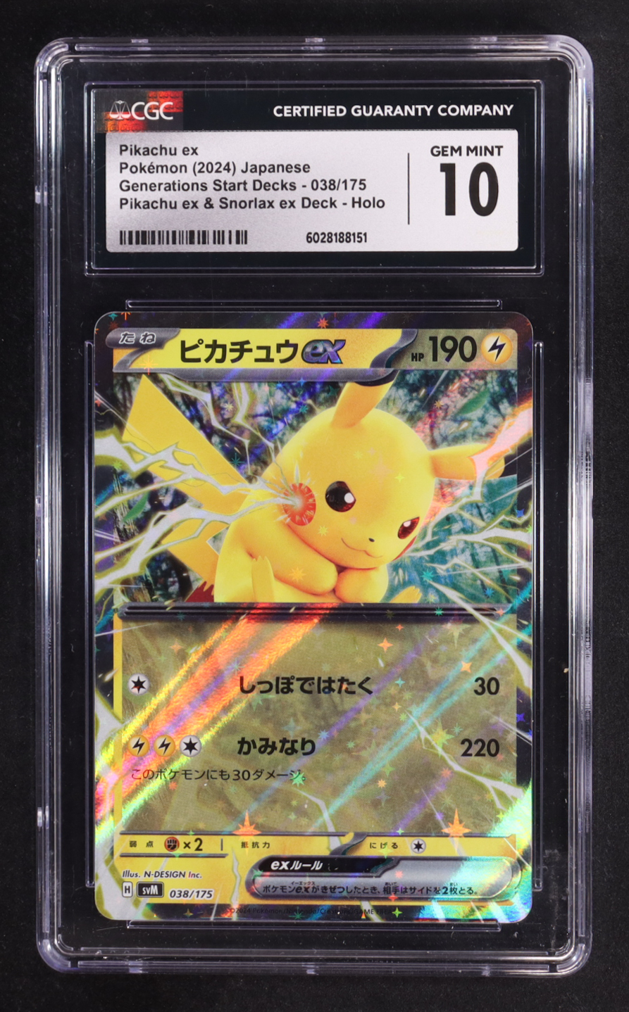 Pikachu ex 2024 Pokemon TCG Scarlet and Violet Generations Start Decks Japanese #038 (CGC 10)