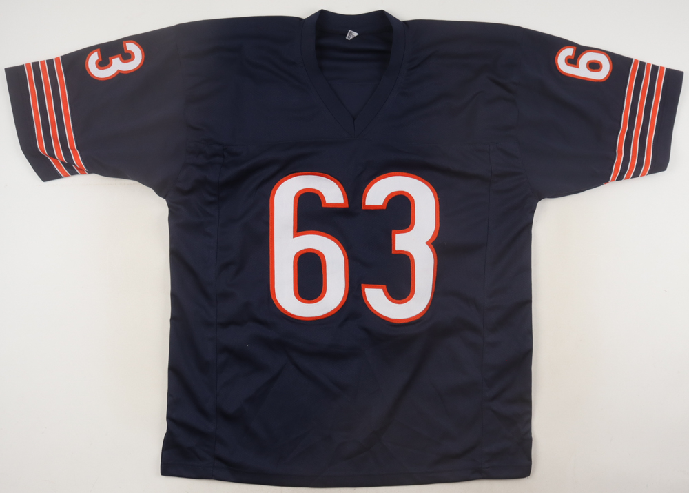 Custom jersey with everything sewn on, size XL. Hand-signed by Jay Hilgenberg.