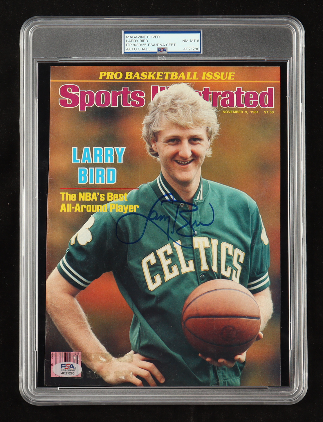 November 9, 1981 "Sports Illustrated" that has been hand-signed by Larry bird (Boston Celtics, HOF). Please see photos regarding the details and condition of the item.