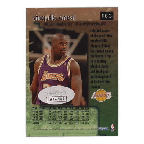 Shaquille O'Neal Signed 1996-97 SkyBox Premium #163 (JSA)