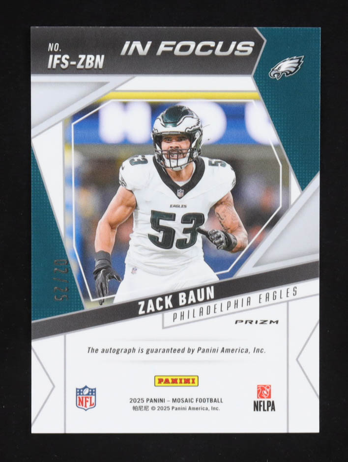 Zack Baun 2025 Panini Mosaic In Focus Signatures White #16 #02/25