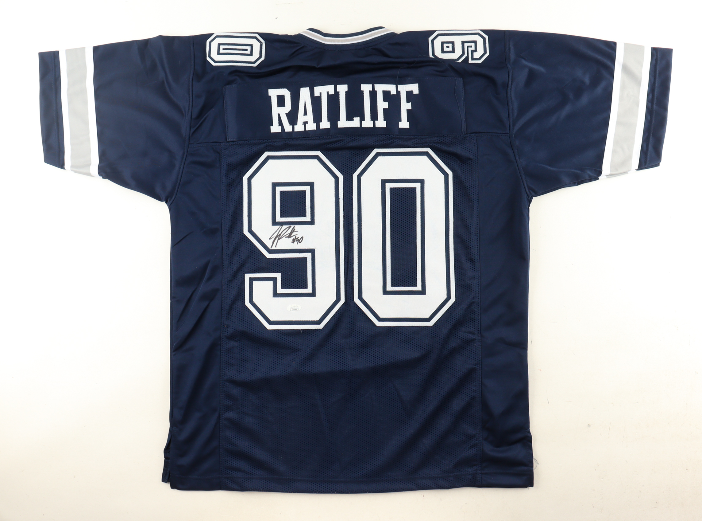 Custom jersey with everything sewn on, size XL. Hand-signed by Jay Ratliff.