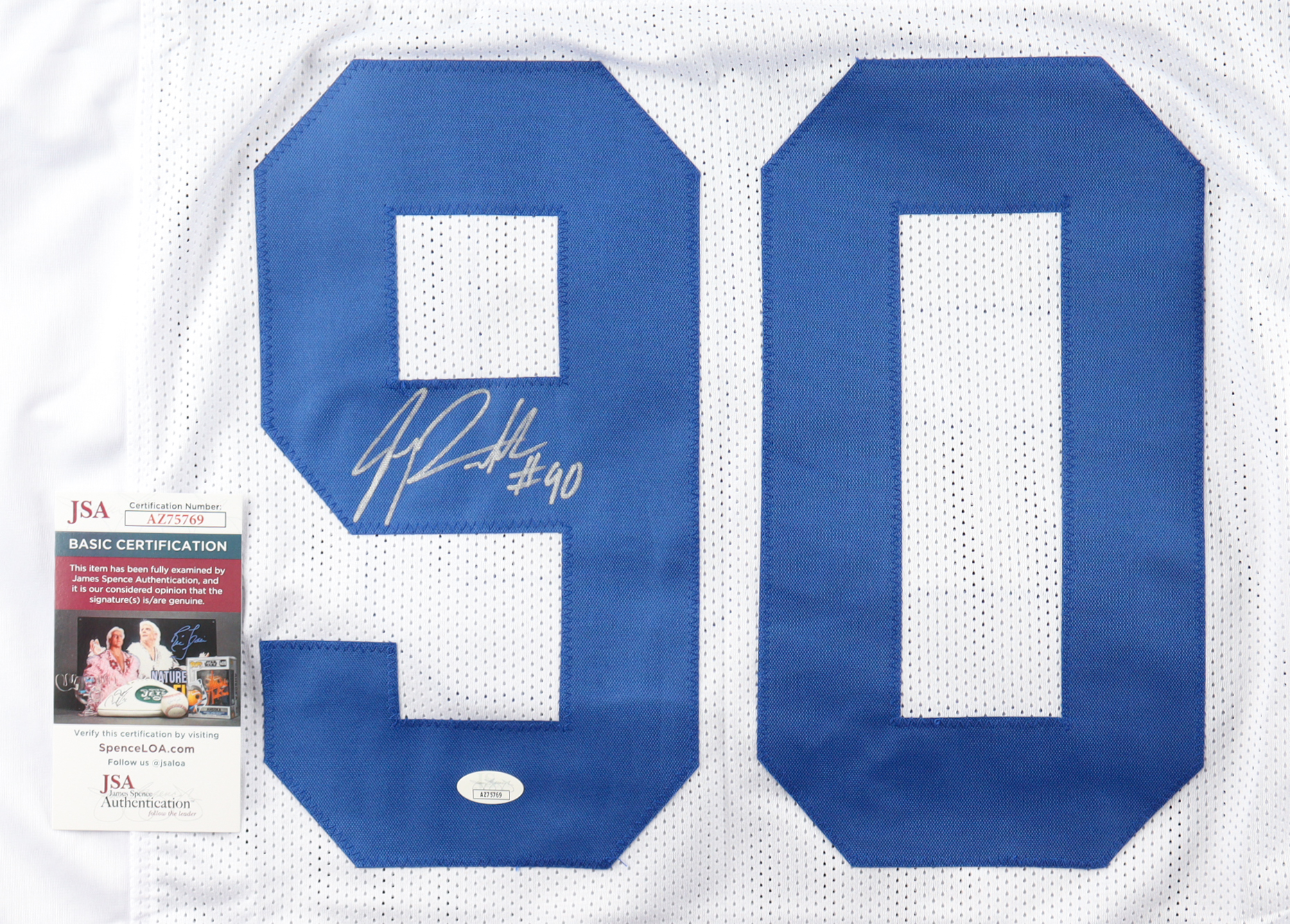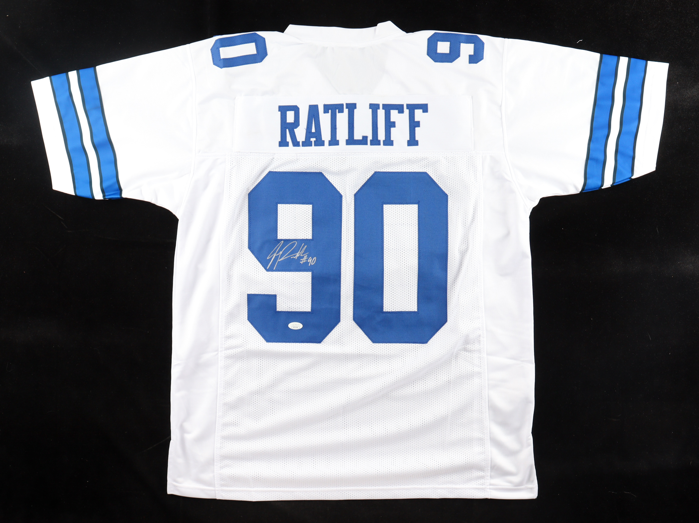Custom jersey with everything sewn on, size XL. Hand-signed by Jay Ratliff.