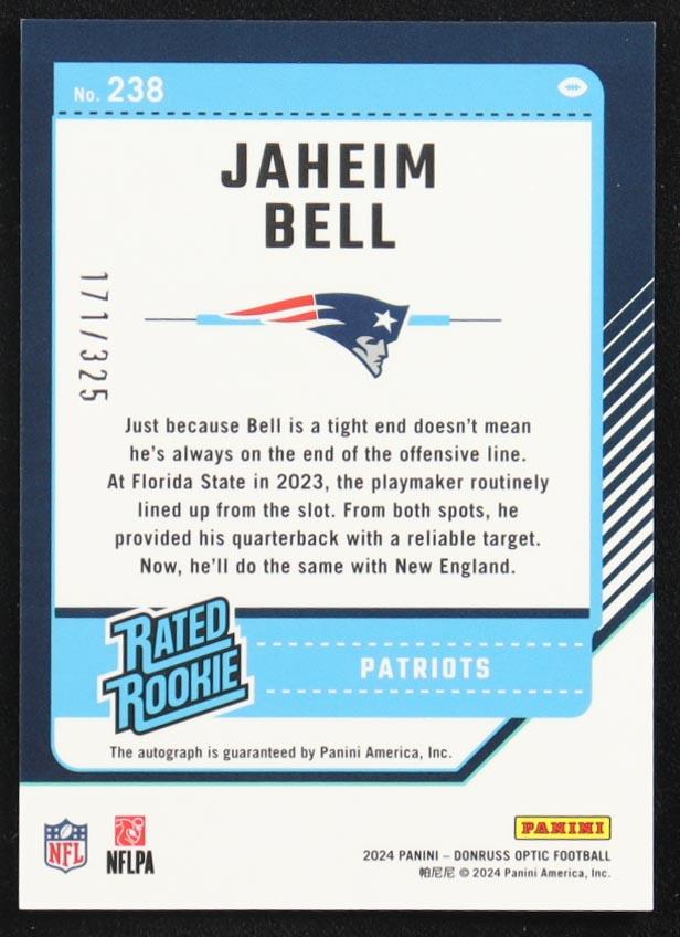 Jaheim Bell 2024 Donruss Optic Rated Rookies Autographs #238 #171/325 RC