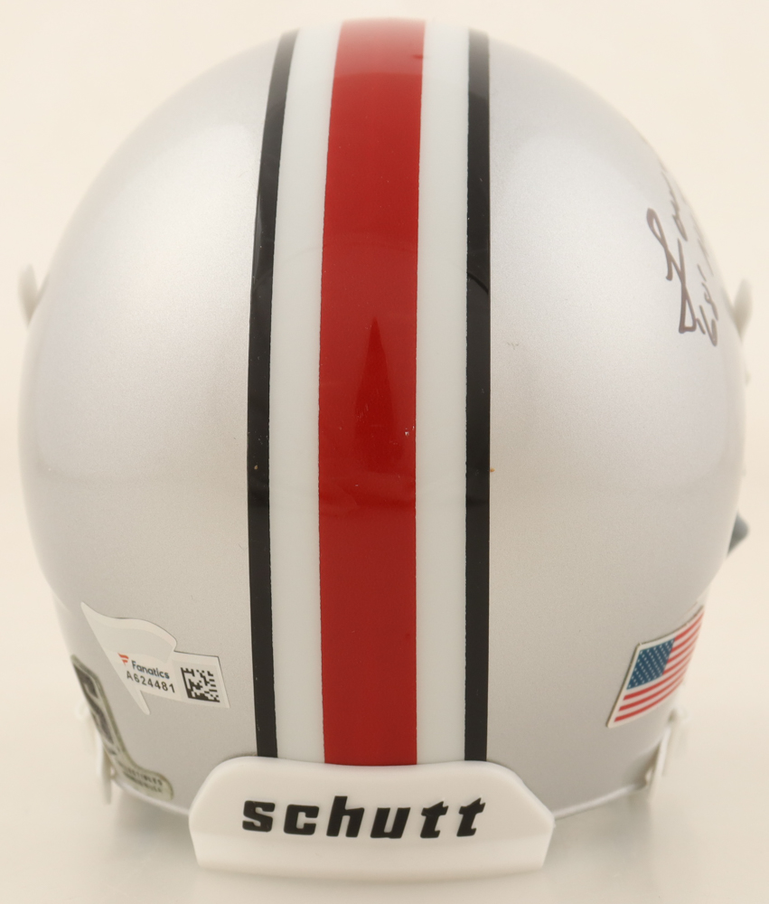 Schutt Ohio State Buckeyes mini helmet has been hand-signed and inscribed by Lou Holtz.