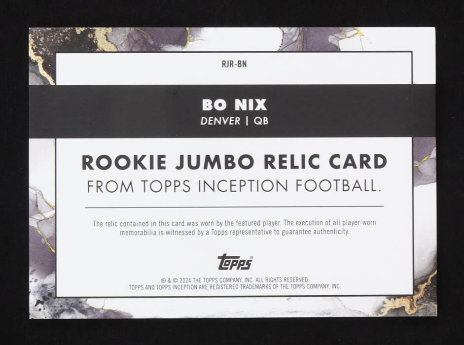 Bo Nix 2024 Topps Inception Rookie Jumbo Relics Magenta #RJRBN #44/99