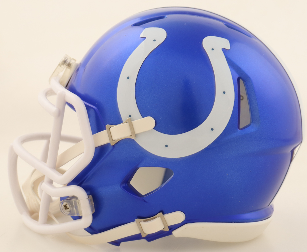 Riddell Indianapolis Colts Flash Alternate Speed mini helmet. Hand-signed by Reggie Wayne.